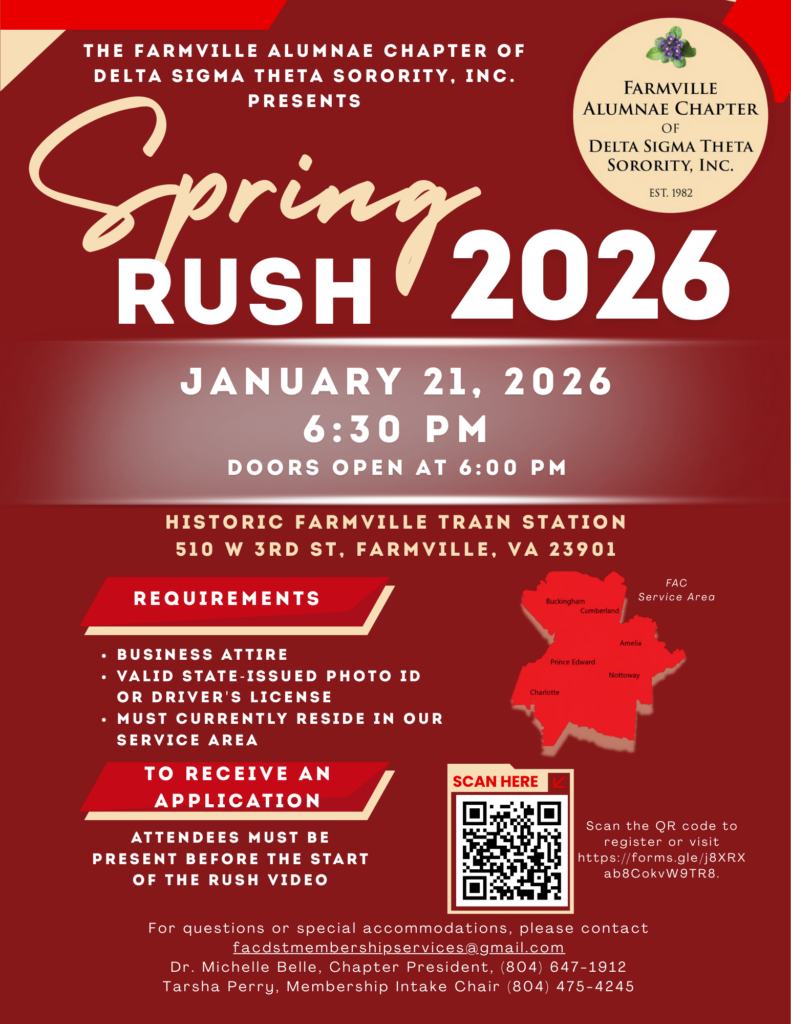 *All proceeds fund chapter public service initiatives as well as scholarships for high school seniors within our service area of Amelia, Buckingham, Charlotte, Cumberland, Nottoway, and Prince Edward Counties.